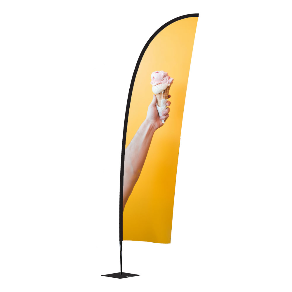 Die Beachflag Wind Small von Creativ Depot in Georgsmarienhütte ist in ihrer Form besonders witterungsbeständig und daher auch für windigere Bereiche hervorragend geeignet. Somit ist sie die ideale Flagge für Außenbereiche, aber auch in Innenbereichen zieht sie die Blicke der Passanten auf sich. Deshalb kann sie optimal als Wegweiser oder zur Kommunikation von Botschaften genutzt werden, beispielsweise auf Messen und Events, bei Produktvorstellungen oder Geschäftseröffnungen. Aber auch als dauerhafter Werbeträger vor Autowerkstätten, an Ständen in der Fußgängerzone oder als Außenwerbung vor dem Einzelhandel ist sie dank ihrer Stabilität bestens geeignet.