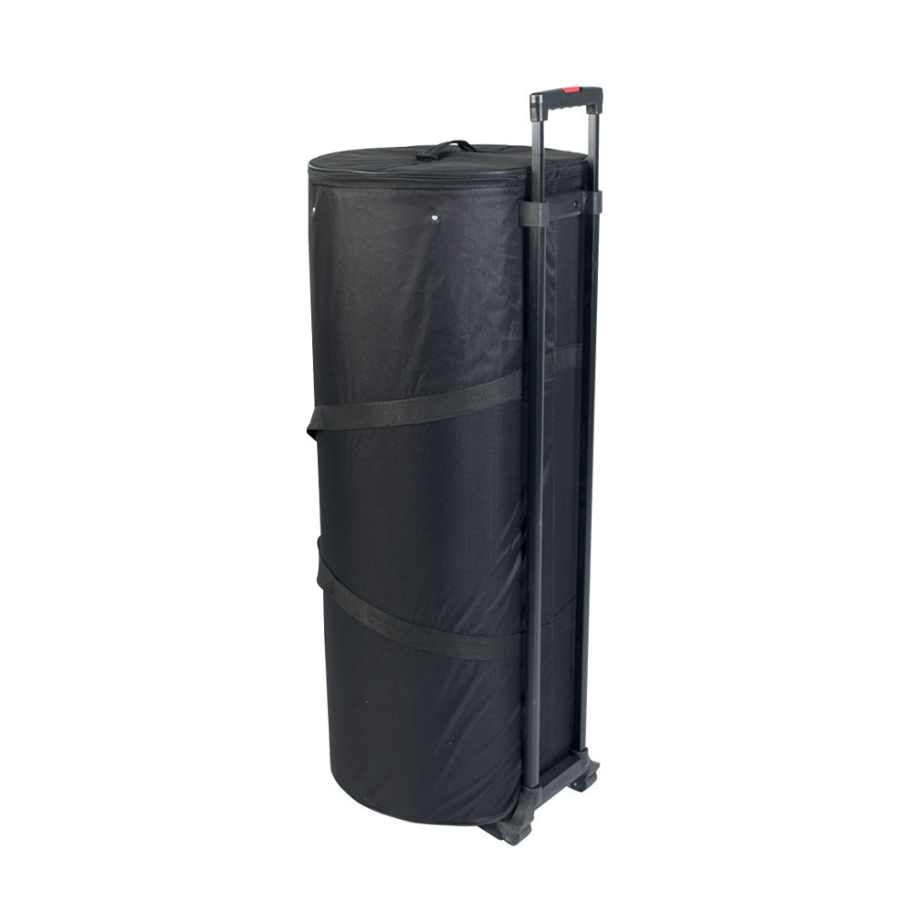 Die Grafik wird mit Magnetband sicher an der Struktur fixiert. Bei Nichtgebrauch lässt sich die Theke kompakt in einem verstärkten Rollkoffer verstauen, was den Transport und die Lagerung erheblich erleichtert. Eine klappbare Thekenplatte in ansprechender Buchenholzfarbe ist ebenfalls inklusive und rundet die Funktionalität dieser vielseitigen Messetheke ab.