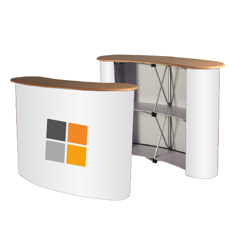 Mit der Messetheke Pop-Up Counter erhalten Sie eine Theke, die nicht nur optisch ansprechend sondern auch funktional ist. Sie ist nicht nur optimal als Werbeträger geeignet, mit welchem Sie Ihre Informationen und Botschaften aufmerksamkeitsstark präsentieren, sie kann gleichzeitig auch als Stehtisch und Ablagefläche genutzt werden. Die große Tischplatte und die Einlegeböden bieten dabei besonders viel Stauraum.