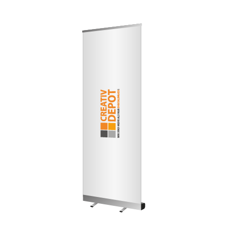 Mit dem Roll-Up Banner von Creativ Depot in Georgsmarienhütte erhalten Sie ein Banner aus der Basic-Reihe. Dieser ist Silber eloxiert und kommt mit zwei ausklappbaren Füßen sowie einer Klemmschiene daher. Auch für Messen, Events, Ausstellungen, Werbeaktionen und Ähnliches eignet der Roll-Up Banner sich ideal, denn er kann einfach und bequem in der mitgelieferten Transporttasche transportiert werden.